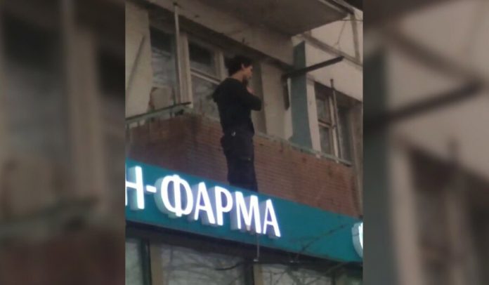 the Unknown man with a knife climbed on the hood of the shop around the underground “Shchelkovo” and threatened to harm himself. On the street