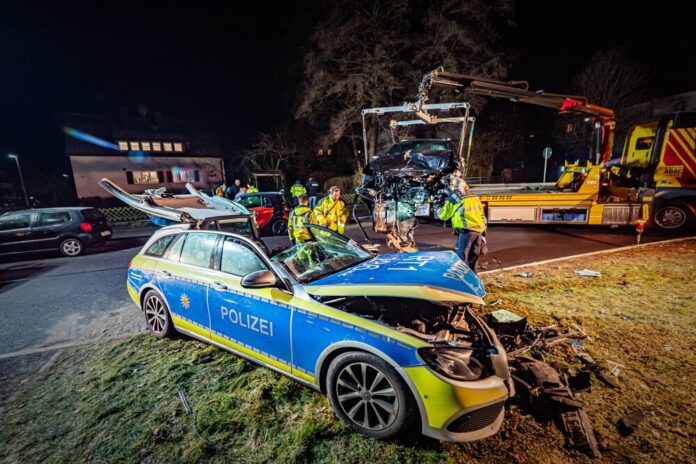 A serious traffic accident on the mission: A police patrol car from Brandenburg / Havel was on the way to a traffic accident in the afternoon when the VW Touran overtook a VW Passat on the Mötzower Landstraße with the flashing lights and Martinhorn on. The driver of the patrol car had apparently completely overlooked the patrol car and suddenly turned left without warning. Both vehicles collided, the car turned.