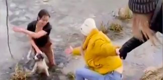 The mother of three children from Mytischi jumped over the dog...