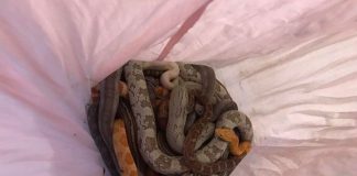Unknown thrown into the street pillowcases with dozens of snakes in...