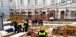 The crane fell on a man at a construction site in...